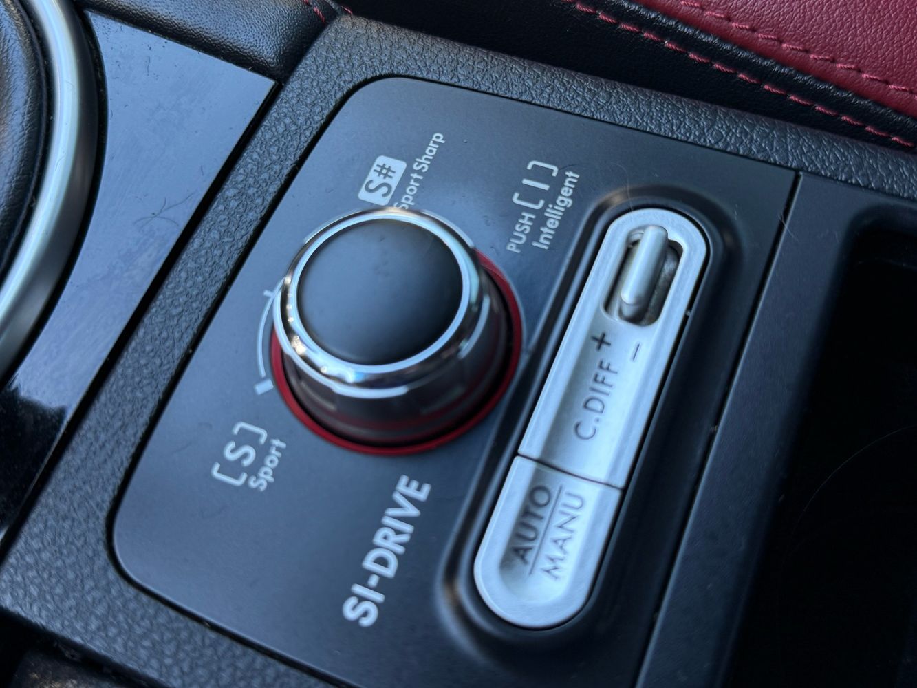 Console insert material: Simulated carbon fibre and metal-look console insert